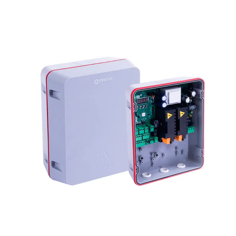 El cuadro de maniobras Erreka vivo I203 digital para puertas de garaje abatibles, correderas y basculantes con salida 230Vac inverter para 1 o 2 motores monofásicos o trifásicos. La tecnología inverter permite un mayor control de la velocidad de apertura y cierre, además de la fuerza del motor, proporcionándole una mayor eficiencia. Con configuración sencilla gracias al display.