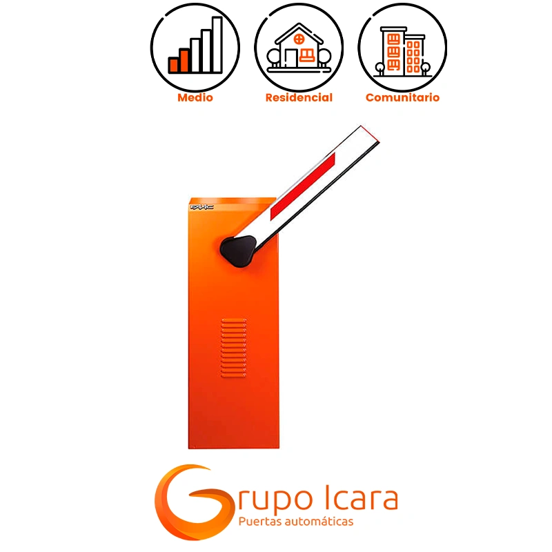 Este modelo cuenta con un motor eléctrico asíncrono monofásico, que opera a una velocidad de 1400 rpm, proporcionando un movimiento suave y rápido de la barrera. El tiempo de apertura varía entre 3,5 y 4,5 segundos, lo que permite un acceso ágil y sin demoras. Esta característica es especialmente útil en áreas de tráfico intenso pero no continuo.