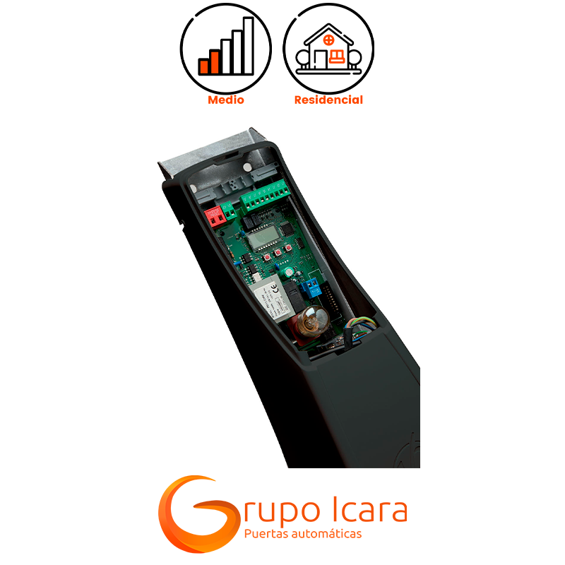 - Conector para receptor de radio y entradas de seguridad: Aumenta la funcionalidad y la seguridad con conexiones para fotocélulas y bandas de seguridad.