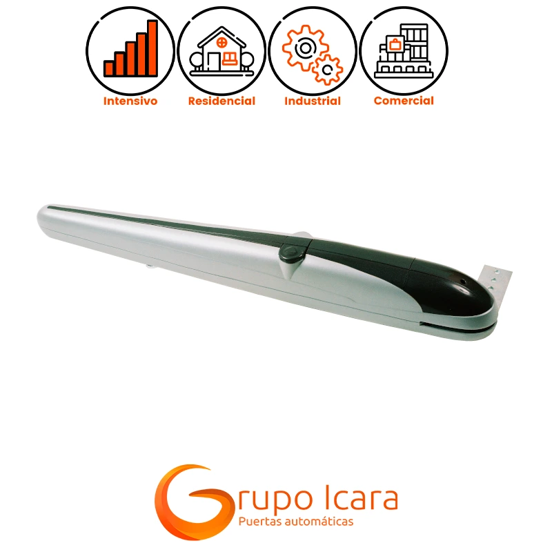 El motor Celinsa KRONOS, disponible tanto en 220 Vac como en 24 Vdc, es la elección perfecta para aplicaciones de uso intensivo, asegurando una operación continua y confiable. Su diseño electromecánico lineal concentra la potencia y fuerza necesarias para mover puertas batientes grandes y pesadas con facilidad, lo que lo hace ideal para instalaciones residenciales de alto tráfico o aplicaciones comerciales e industriales.