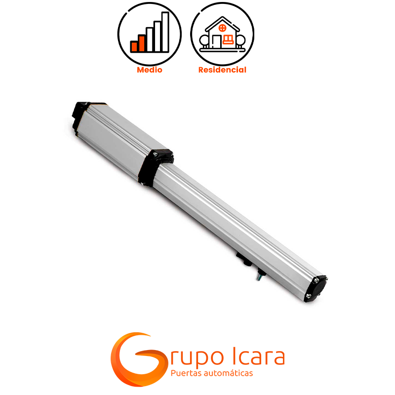 Con una carrera útil de 400 mm, este motor es perfectamente adecuado para hojas de puerta de hasta 3 metros y con un peso máximo de 200 kg, ofreciendo una solución versátil para una amplia gama de aplicaciones.