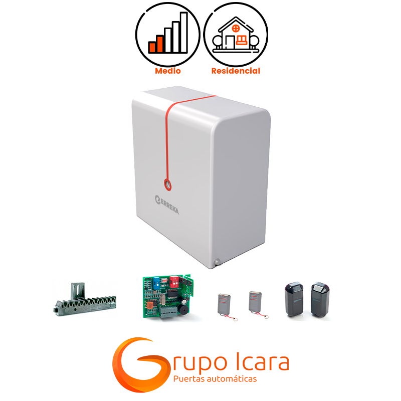 Características del kit de motor Erreka Dingo para puertas correderas